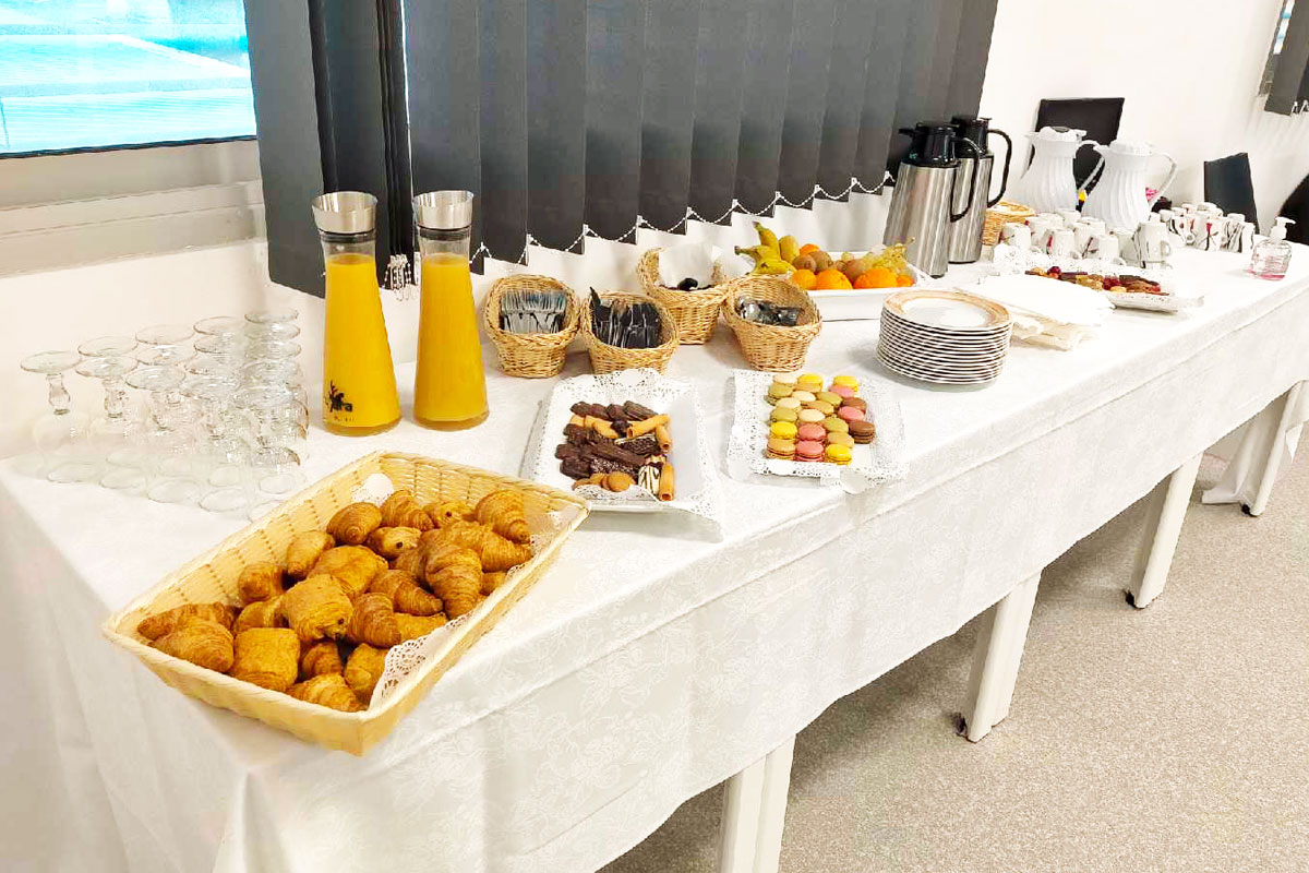 La restauration est aussi un élément important dans la réussite d’un évènement d’entreprise. Tout au long de votre séjour et selon votre budget, vous pouvez opter pour des repas dans notre cafétéria self-service ou dans nos 3 salles de restauration privatives avec un service à table ou sous forme de buffet. Selon votre planning et vos souhaits, accueil café et pauses vous seront servis en salle.